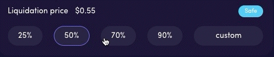 Açık mavi SAFE göstergesi, aşırı riskli ayarlar oluşturduğumzda bizi uyarmaya yardımcı olacaktır. LİKİDASYON FİYATI, likidasyon için işaretlenebileceğimiz bileşen fiyatını gösterecektir.