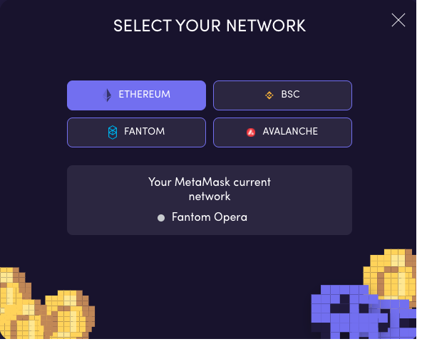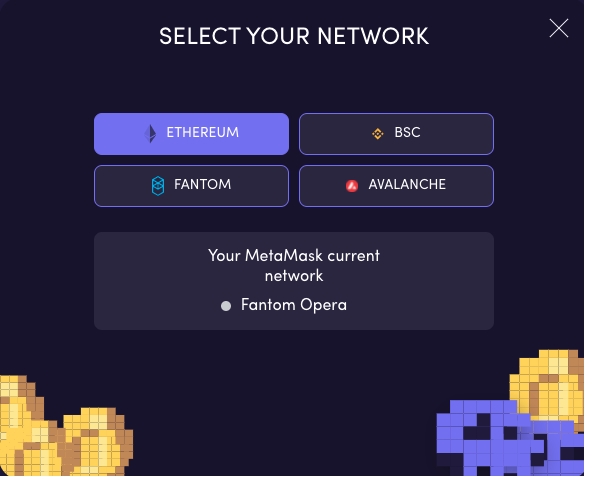Kullanıcılar "DASHBOARD"un sol tarafında bulunan Mor düğmeye tıklayarak Abracadabra’yı kullanmak istedikleri ağı seçebilecekler.